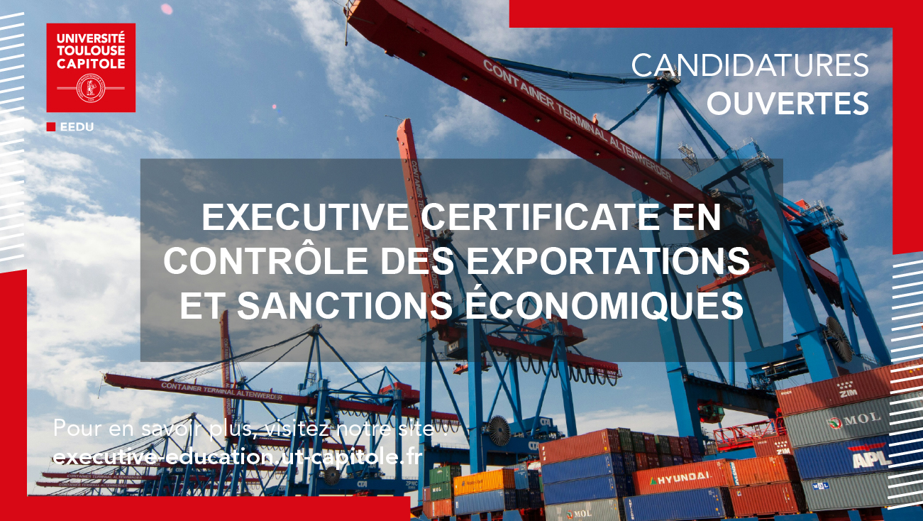 Candidatures ouvertes du 13 avril au 8 juillet 2026 pour l’Executive Certificate en Contrôle des Exportations et Sanctions Économiques. Cette formation diplômante, unique en Europe, permet d’acquérir une expertise stratégique en conformité internationale.