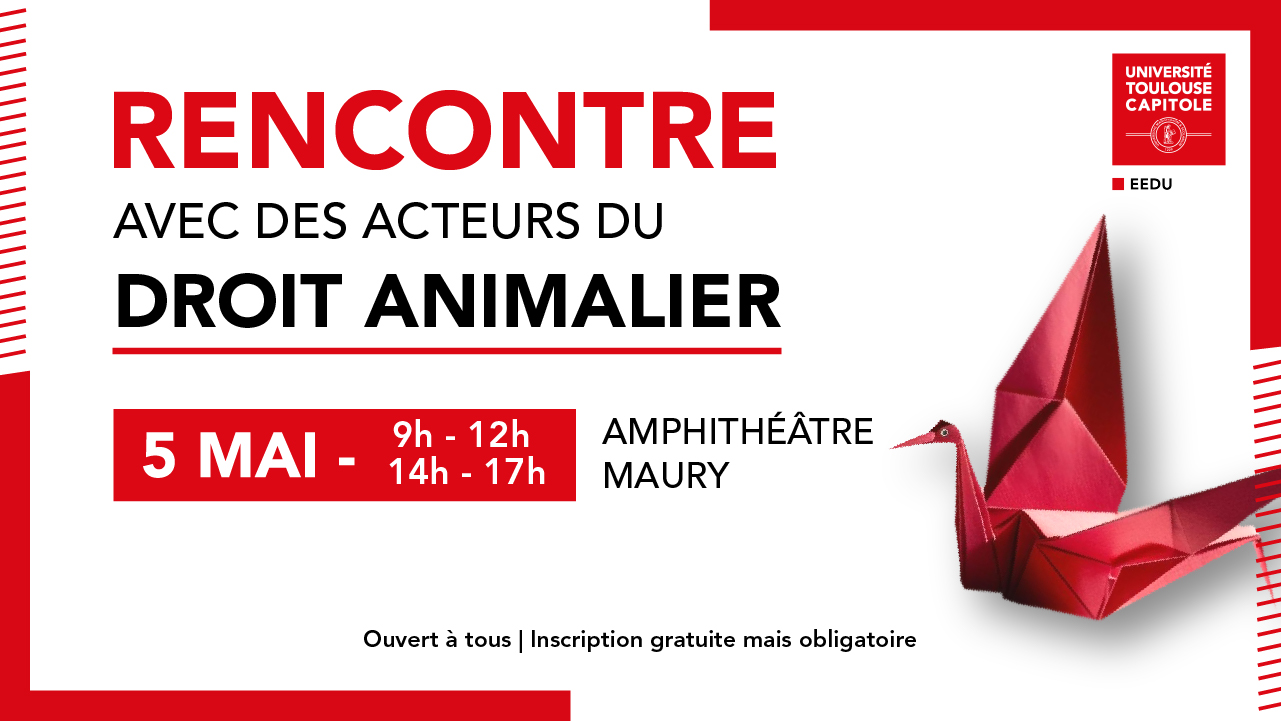 Participez à une journée gratuite dédiée au droit animalier le 5 mai 2026 à Toulouse et échangez avec des professionnels engagés. Inscription obligatoire.