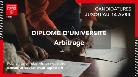 - Candidatures ouvertes : DU ArbitrageLes candidatures pour le Diplôme d’Université Arbitrage sont ouvertes jusqu’au 20 avril 2026 sur la plateforme eCandidatures.Cette formation de cinq mois, alliant enseignement en ligne et regroupements en présentiel, propose une spécialisation approfondie dans le droit de l’arbitrage interne et international.Dirigé par Lukas Rass Masson, ce diplôme s’adresse aux professionnels du droit souhaitant renforcer leurs compétences pratiques et théoriques dans la gestion des litiges commerciaux.En savoir plus