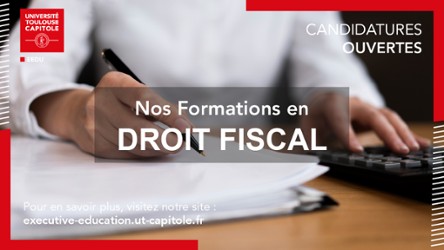- Candidatures ouvertes : M2 Droit FiscalLes candidatures aux Masters 2 Droit fiscal de l’Université Toulouse Capitole sont ouvertes du 13 avril au 6 juillet 2026 : deux formations spécialisées pour maîtriser la fiscalité de l’entreprise et le contentieux fiscal et douanier.En savoir plus
