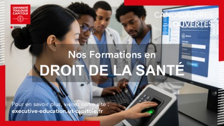 - Candidatures ouvertes : Formations Droit de la SantéLes candidatures sont ouvertes du 30 mars au 1er juin 2026 pour cinq formations spécialisées en droit de la santé proposées par l’Université Toulouse Capitole : trois diplômes d’université et deux masters 2 destinés aux juristes et professionnels de la santé souhaitant développer une expertise dans les secteurs sanitaire, médico-social et judiciaire.En savoir plus